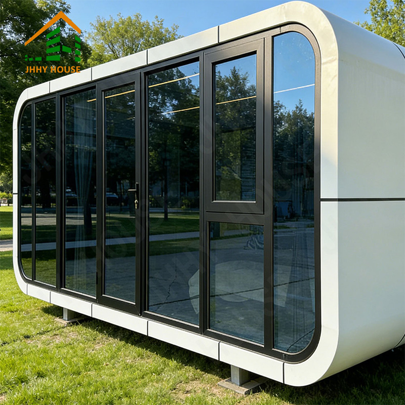 The main galvanized steel structural double frame Case aluminum plate (2.0mm) Shell surface treatment (fluorocarbon paint spraying process) 120mm polyurethane foam insulation Panoramic glass curtain wall (6+12A+6+12A+6 insulated low-e tempered glass) Panoramic glass oversized sunroof (6+6 laminated tempered glass+retractable canopy) Entry door (fire-rated steel door-with fingerprint waterproof combination lock) |